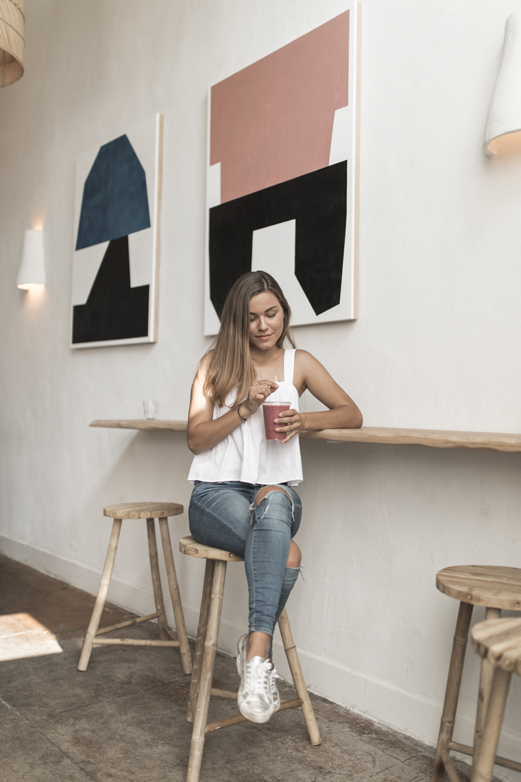 Venice Beach war meiner Meinung nach sehr trashy und voller Touristen. Aber wenn man ein wenig in die Gassen und Straßen, abseits vom Strand, geht, findet man echte Schätze! Neben einem richtig coolen Vintage Store haben wir das Great White Café gefunden. Ich war zwar noch nie in Australien, stelle mir die Restaurants und Cafés genau so vor!