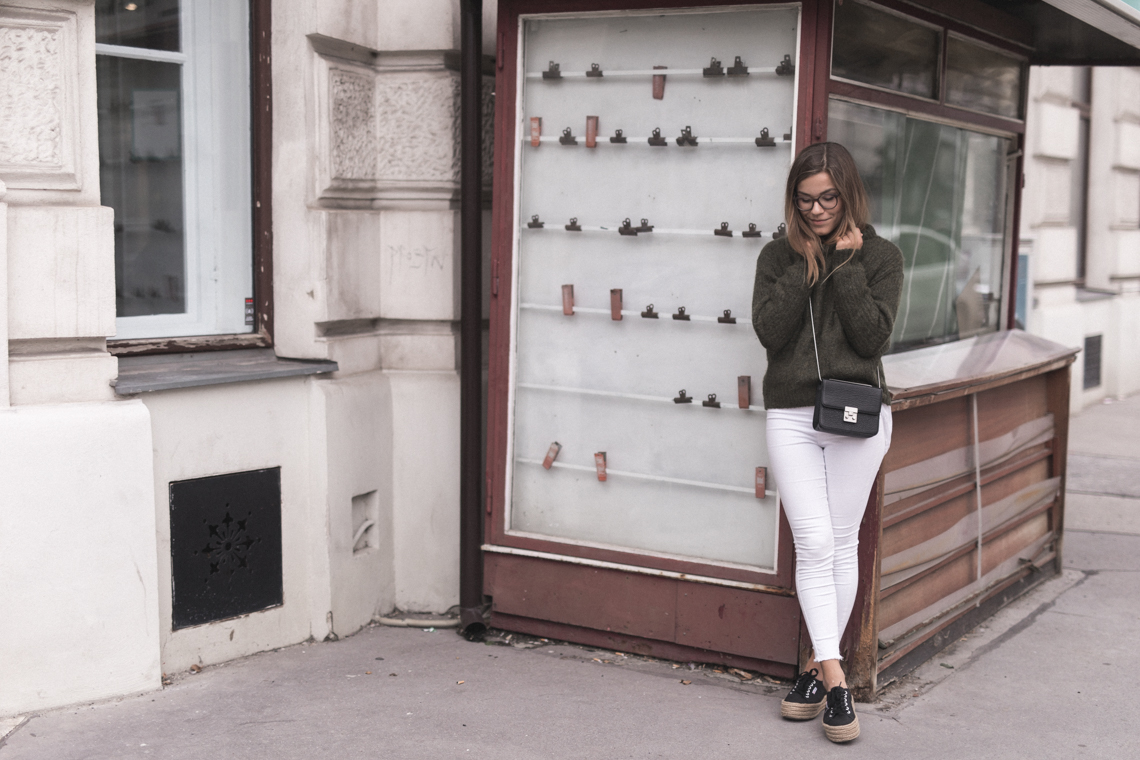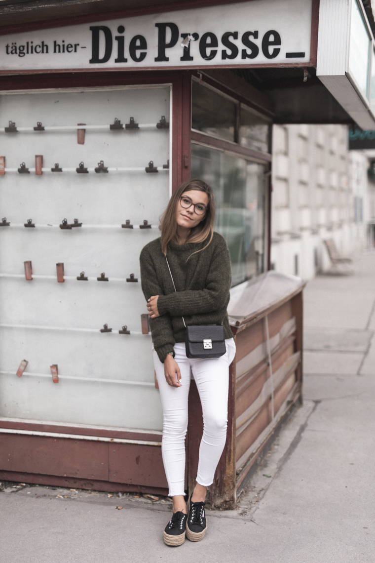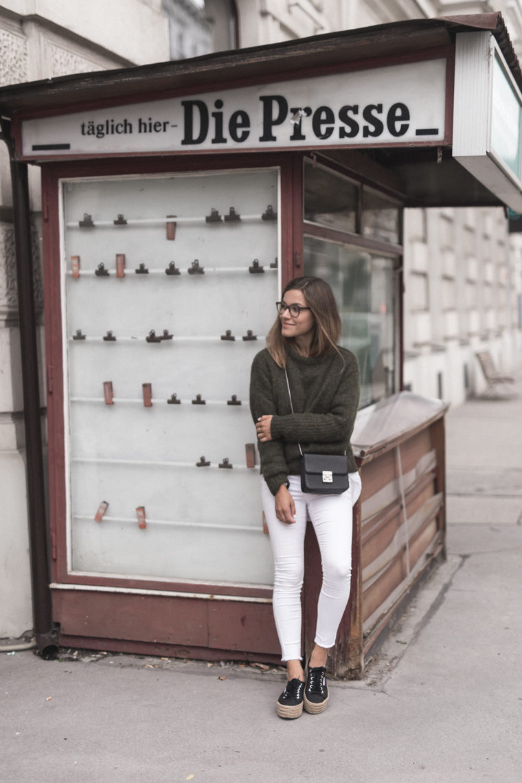 Könnt ihr euch noch an dieses Outfit erinnern? Ich habe es im Juli (!!) mit Nina in Wien geshootet und nie veröffentlicht. Wahrscheinlich, weil damals 5 Tage lang Herbststimmung herrschte und es anschließend wieder an die 40 Grad hatte – da hätte das Outfit nicht wirklich reingepasst!