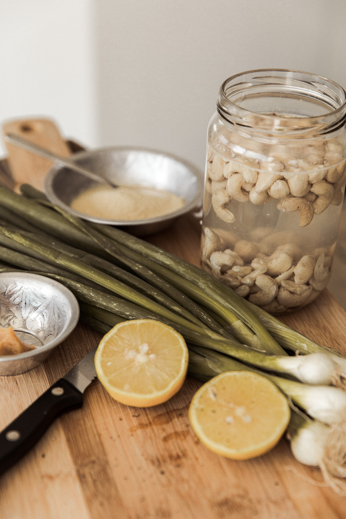 - Die Cashews für 4-10 Stunden in Wasser einweichen