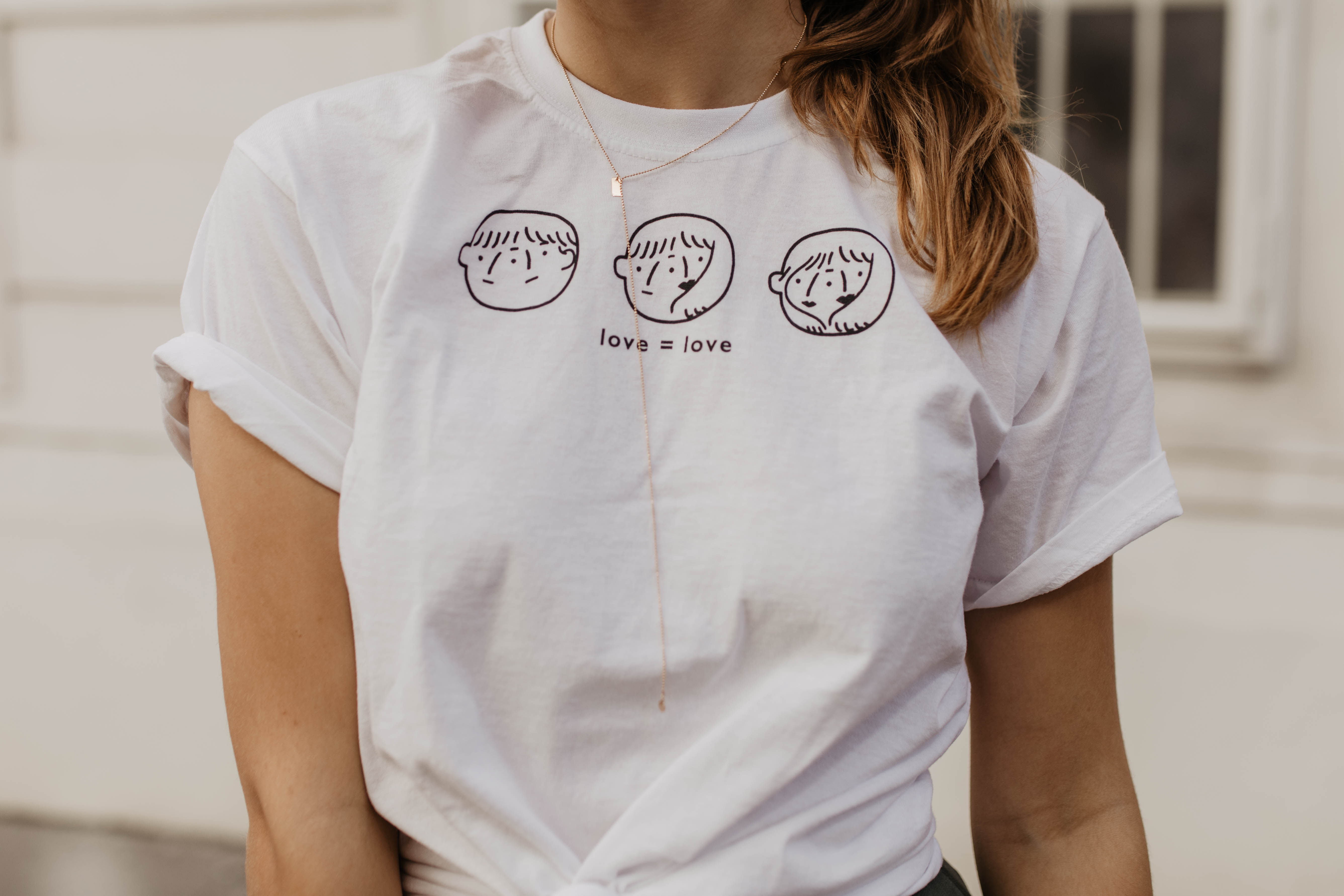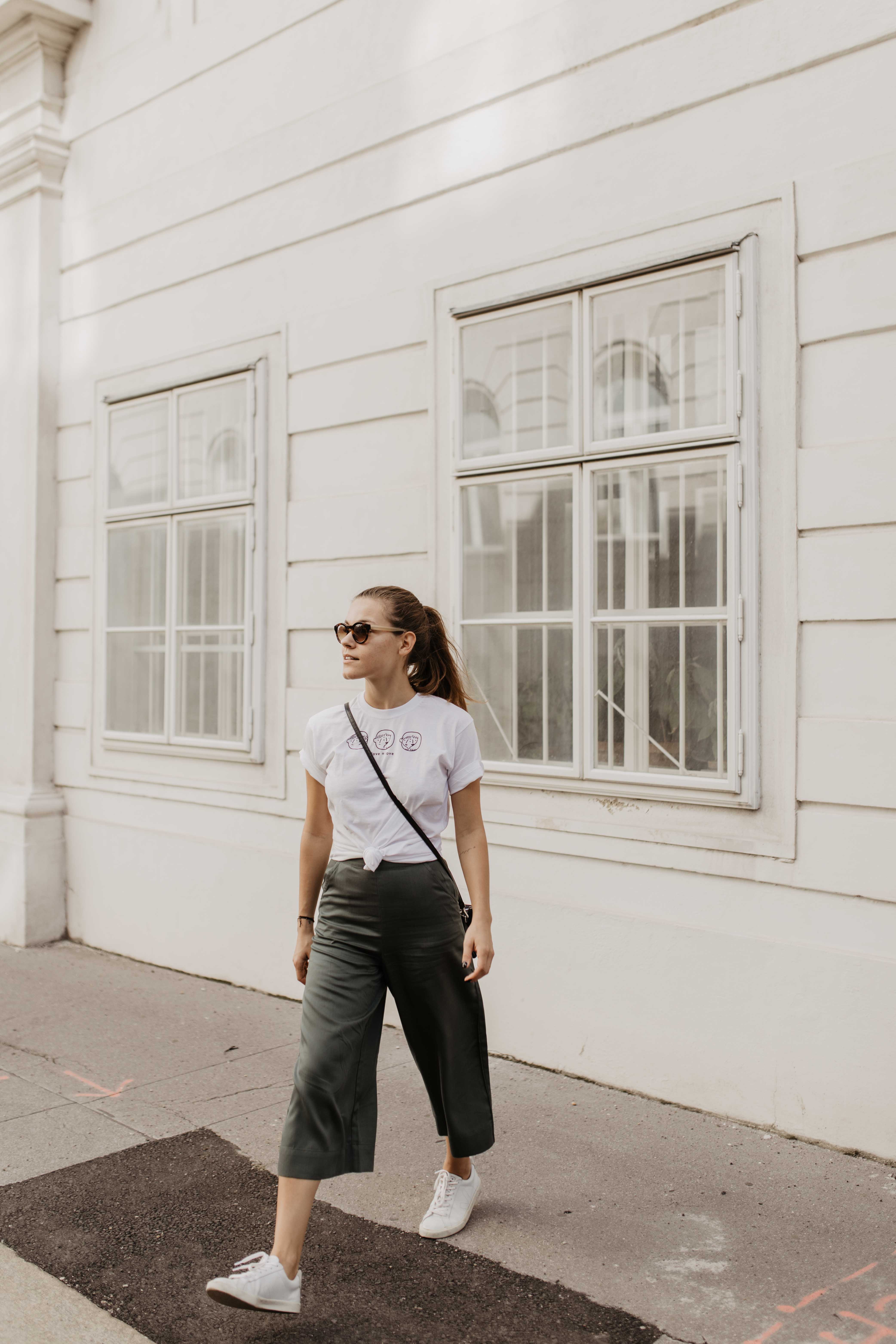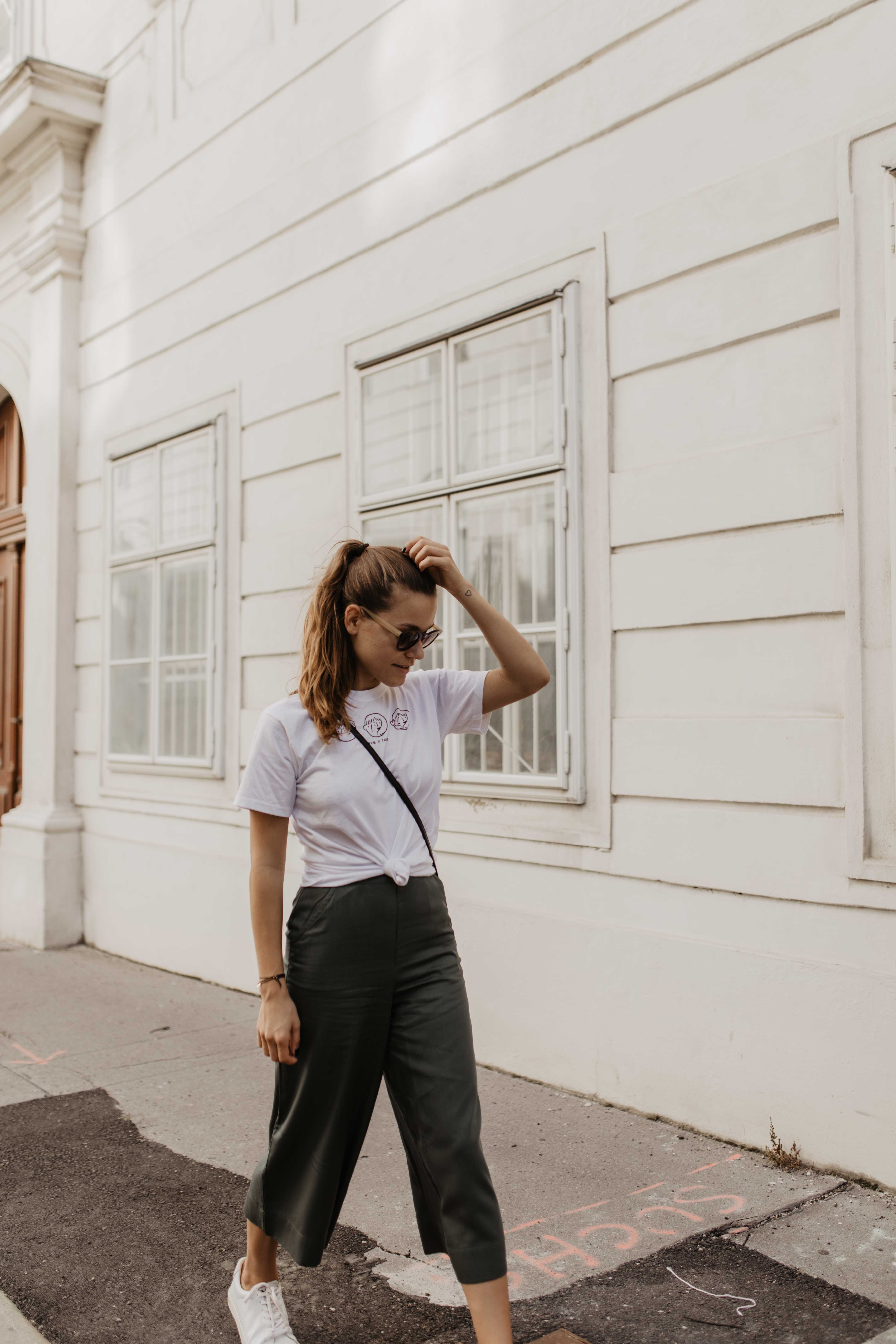Die letzten Sommerwochen sind gekommen und die Tage werden immer kühler. Dieses Outfit ist perfekt für einen Spätsommertag – die Hose ist locker und das Material ist richtig angenehm kühl. Das love is love Shirt habe ich vergangene Woche von der Designerin Sabinna zugeschickt bekommen. Sabinna Rachimova ist in Russland geboren, in Österreich aufgewachsen und hat jetzt ein Label in London. Ich liebe die Message des Shirts – was sagt ihr dazu?