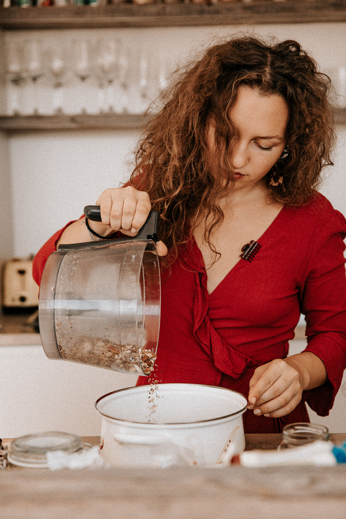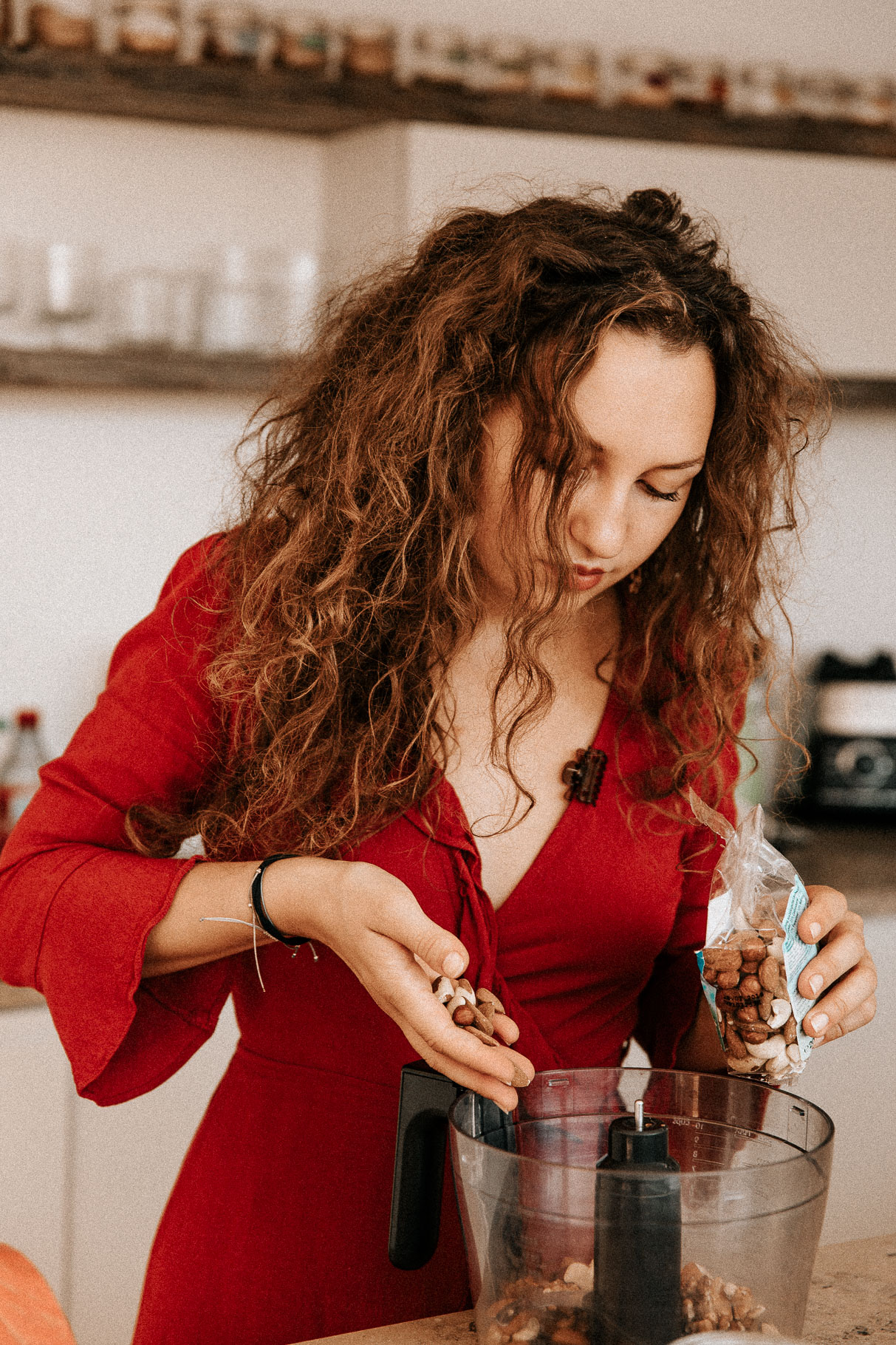 - in der Zwischenzeit die Nüsse und Samen im Mixer für eine Sekunde zerkleinern und mit den Gewürzen, sowie allen weiteren Zutaten vermischen