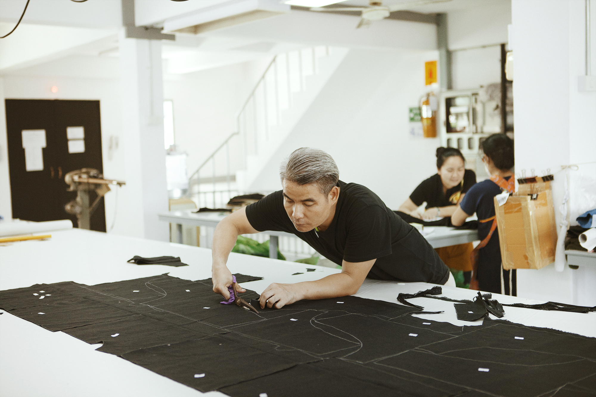 Alles ist made-to-order und wird aus Stoffen aus der Region in der Fabrik ihres Vaters hergestellt. Die meisten Schneiderinnen und Schneider sind schon seit 10 Jahren im Unternehmen und werden im Designprozess miteinbezogen. Hier ein paar Einblicke in die Produktion…