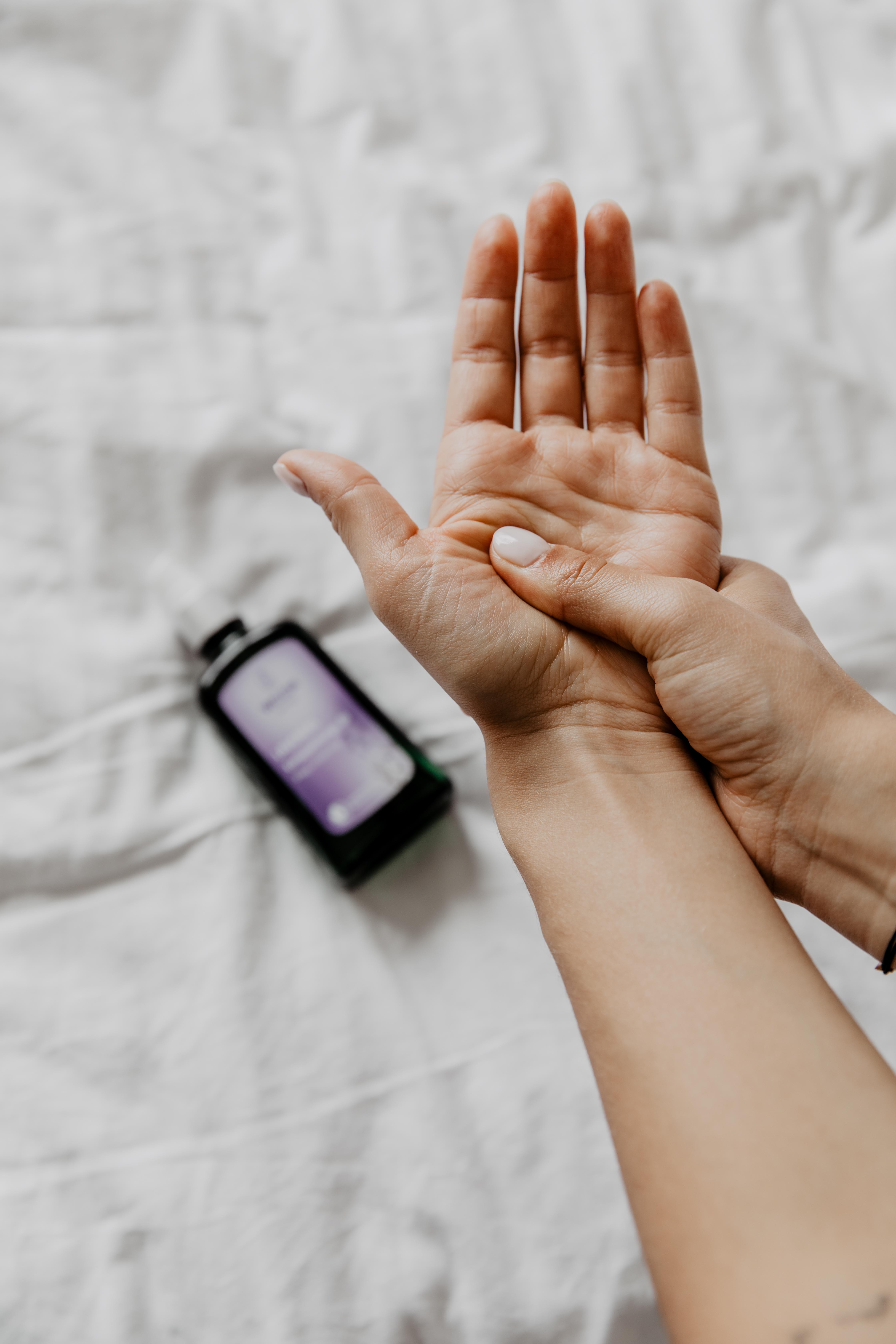 Man kann die Öle auch für Massagen, wie zum Beispiel Handmassagen, verwenden. Hier ein Bild mit verschiedenen Handmassage-Techniken, die man an sich selbst ausprobieren kann: