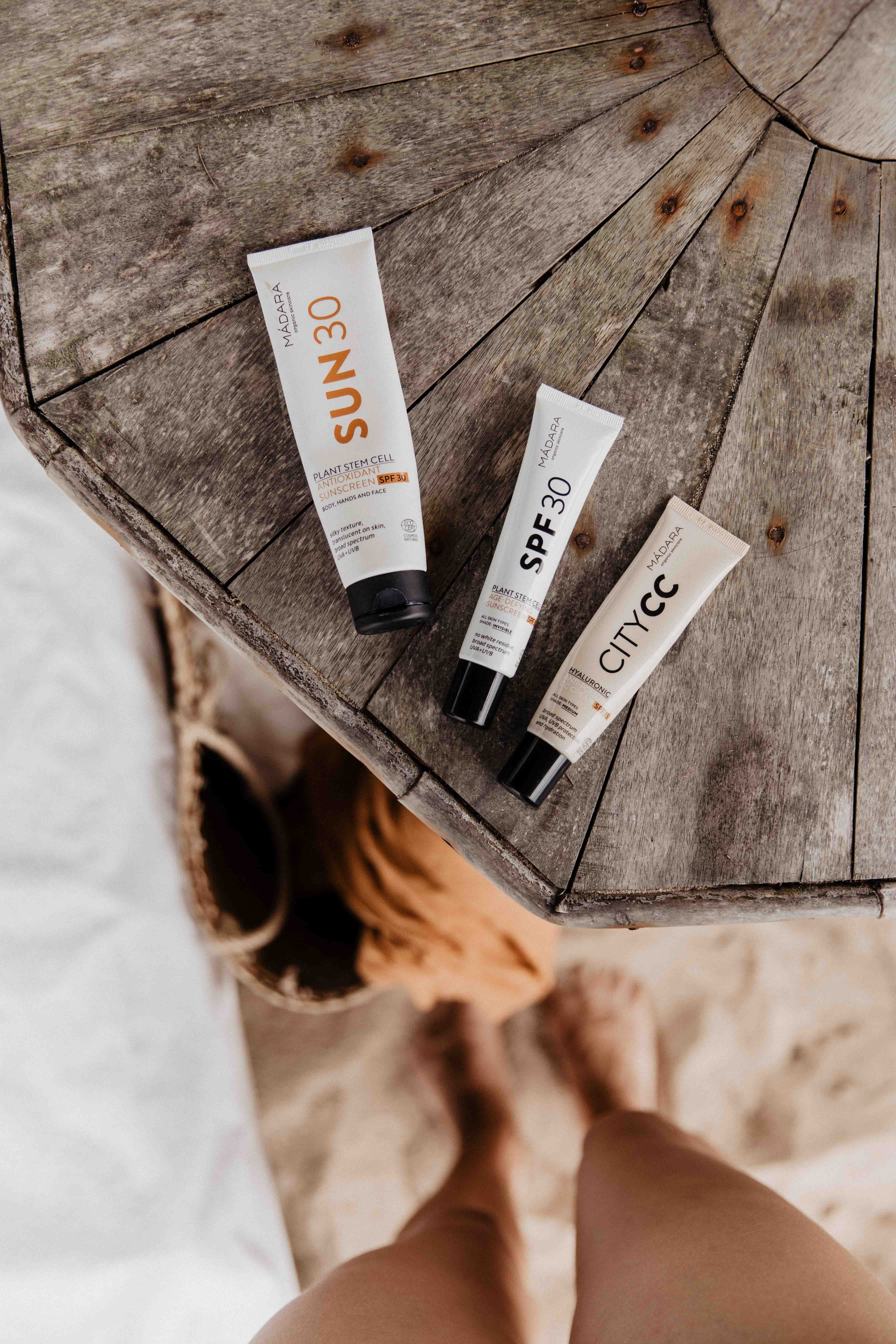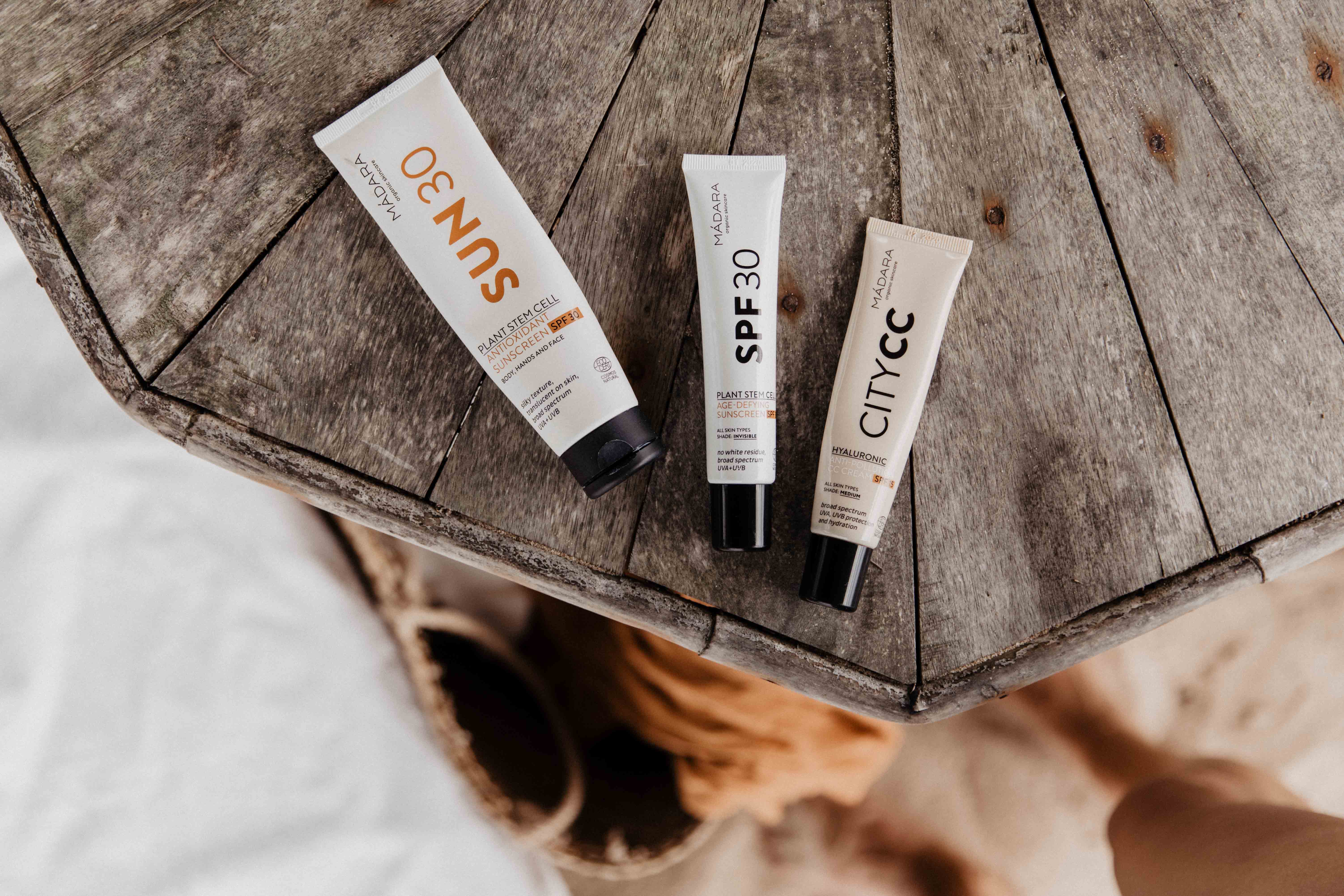 Je nach Anlass verwende ich entweder die Mádara SPF30 Plant Stem Cell Age-Defying Gesichtssonnencreme (ganz dezentes natürliches Finish, verbessert den Teint und ist “for him and her”) oder die Hyaluronic Anti-Pollution CC Cream. Da letztere nur über SPF15 verfügt, verwende ich sie gerne an bewölkten Tagen oder Städtetrips. Ich habe diese CC Cream übrigens in den vergangenen 6 Monaten anstatt von Foundation/Makeup verwendet und war begeistert. Sie hat eine leichte Tönung und macht einen gesunden, frischen Teint (ohne zu viel abzudecken). Ein perfekter Skin-Enhancer also!