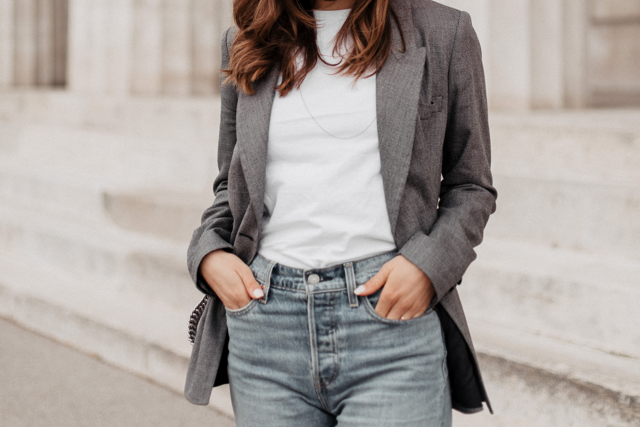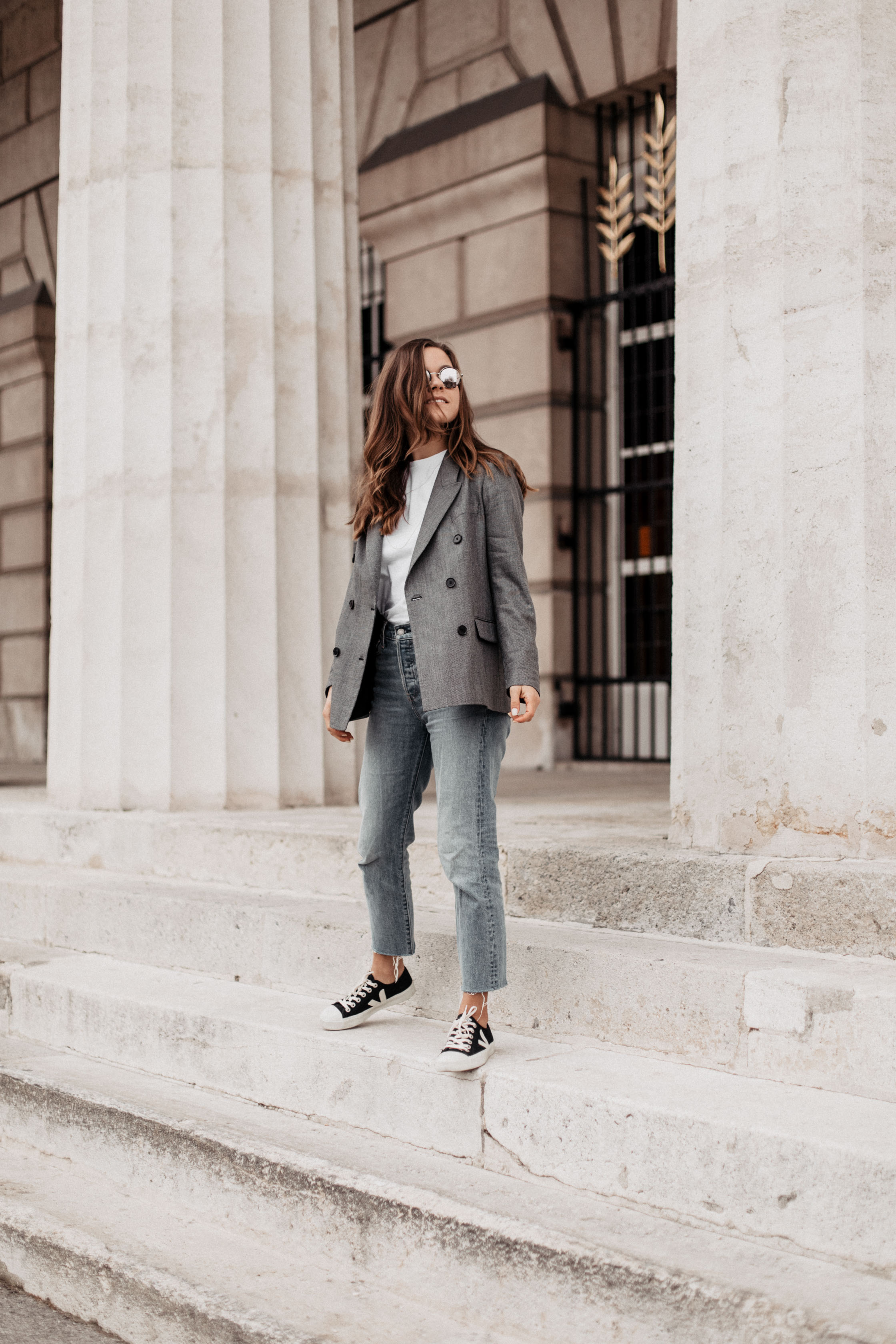 sun glasses MISTER SPEX / coat ARITZIA / blazer ARMEDANGELS * / shirt THE SLOW LABEL * /