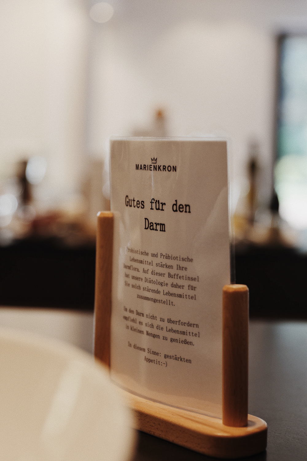- Aufklärung zu Darmgesundheit: Neben einem Vortrag zum Thema Mikrobiom, wird man auch direkt am Buffet aufgeklärt: der Brottrunk, der Leinsamensud und diverse weitere Prä- und Probiotika findet man dort. Von vielen Gästen wurden mir außerdem die Bücher im Hotel-Shop empfohlen.